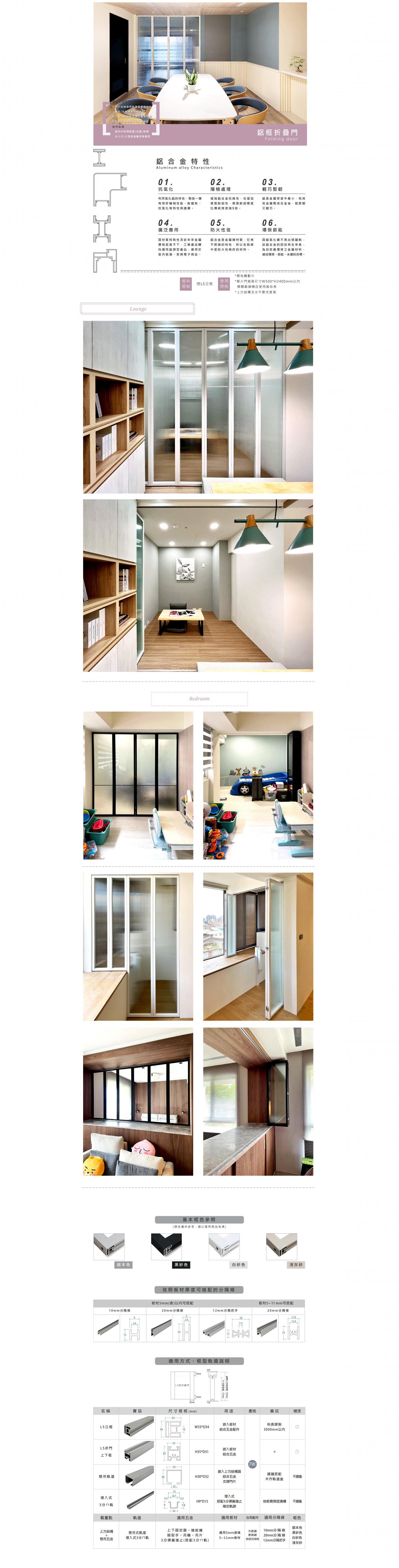//////////////////////////////////////////////////////////////////////// 【折疊門常見Q&A】 Q 折疊門規劃需求為何? A 我司室內折門規格建議如下: 框型限制為LS框。 需為雙數片(門片走偏軌)。 單片門片大小建議限制在W60*H240 cm以內,開關最為滑順且使用壽命長。 可走下軌道,唯下軌道需為埋入式,需於地板結構完成前規劃施工。
